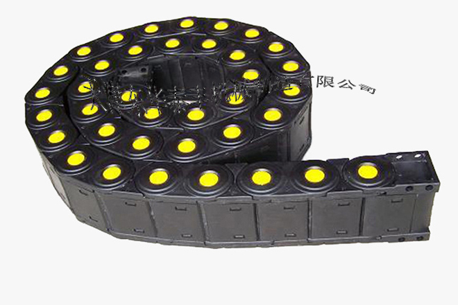 ? 拖鏈外形似坦克鏈,由眾多單元鏈節(jié)組成,鏈節(jié)之間轉(zhuǎn)動(dòng)自如。相同系列的拖鏈內(nèi)高、外高、節(jié)距相同,拖鏈內(nèi)高、彎曲半徑R可有不同的選擇。單元鏈節(jié)由左右鏈板和上下蓋板組成,拖鏈每節(jié)都能打開,裝拆方便,不必穿線,打開蓋板后即可把電纜、油管、氣管等放入拖鏈內(nèi)。