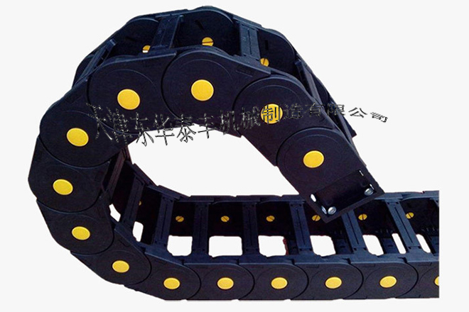 ? 拖鏈外形似坦克鏈,由眾多單元鏈節(jié)組成,鏈節(jié)之間轉(zhuǎn)動自如。相同系列的拖鏈內(nèi)高、外高、節(jié)距相同,拖鏈內(nèi)高、彎曲半徑R可有不同的選擇。單元鏈節(jié)由左右鏈板和上下蓋板組成,拖鏈每節(jié)都能打開,裝拆方便,不必穿線,打開蓋板后即可把電纜、油管、氣管等放入拖鏈內(nèi)。
